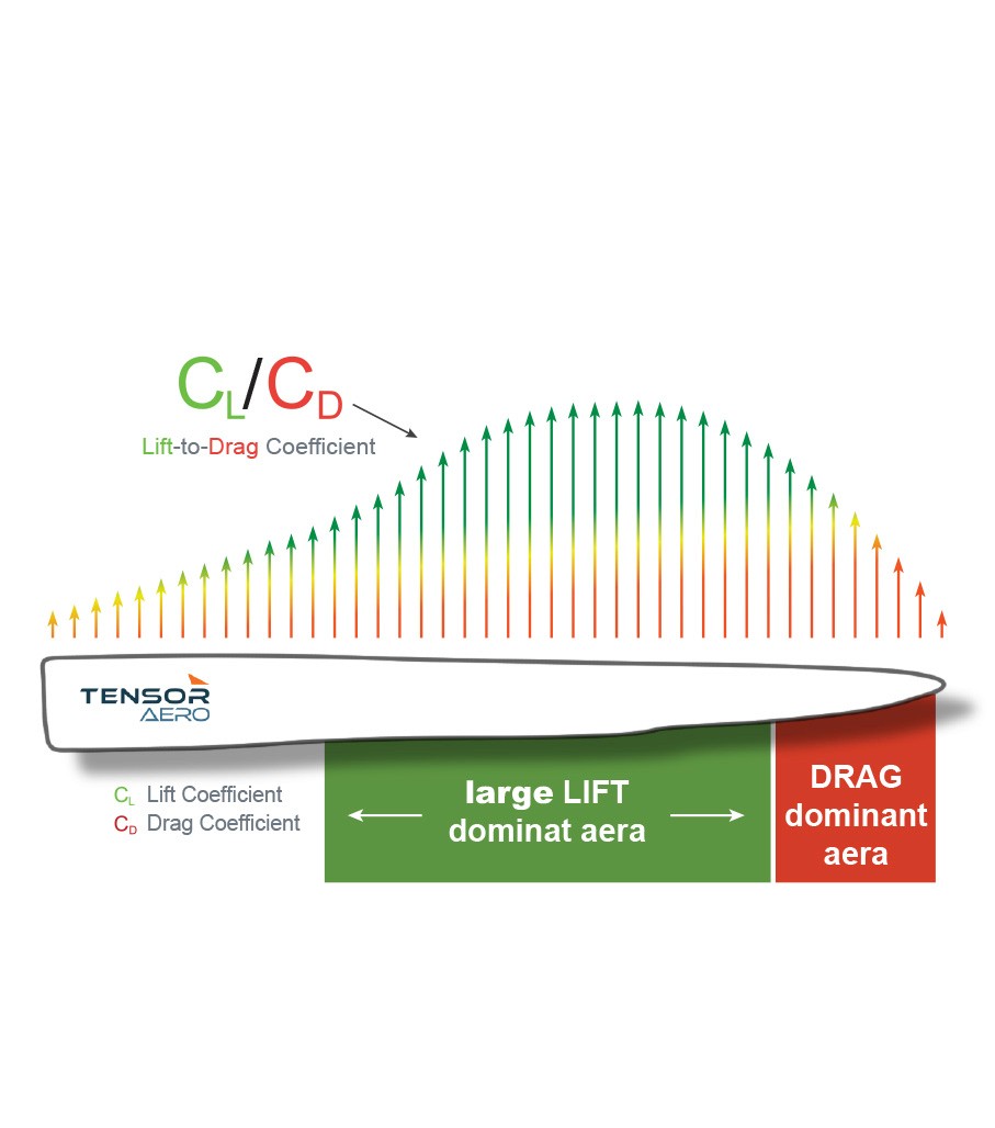 The TENSOR Rotor Blade is based on a proprietary and patented aerodynamic design that balances lift and drag across a wide operating envelope. This enables higher performance margins and supports larger, heavier aircraft. The design is validated through simulations, wind tunnel testing, and real-world flight operation on the TENSOR 600-Series aircraft.